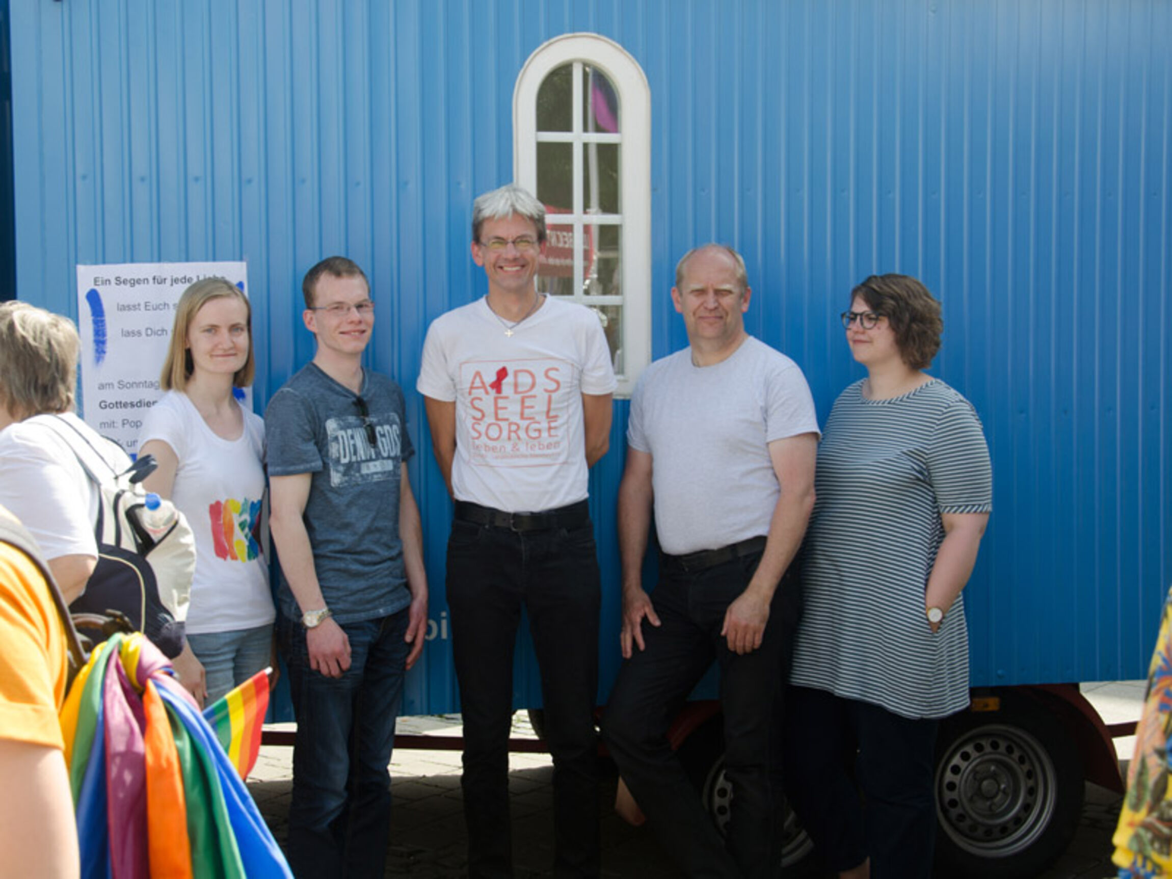 Die Nachbarschaft war laut, bunt und wunderschön schrill, dennoch fand Axel Kawalla Menschen, die ihm in Ruhe zuhörten: Mit dem Kirchenmobil und einem kleinen Team war der Beauftragte für HIV- und AIDS-Seelsorge beim Christopher Street Day (CSD) auf dem Opernplatz in Hannover präsent. In der leuchtend blauen rollenden Kirche, einem umgebauten Bauwagen, bot Kawalla einen Segen für jede Liebe an und kam mit vielen Menschen ins Gespräch.