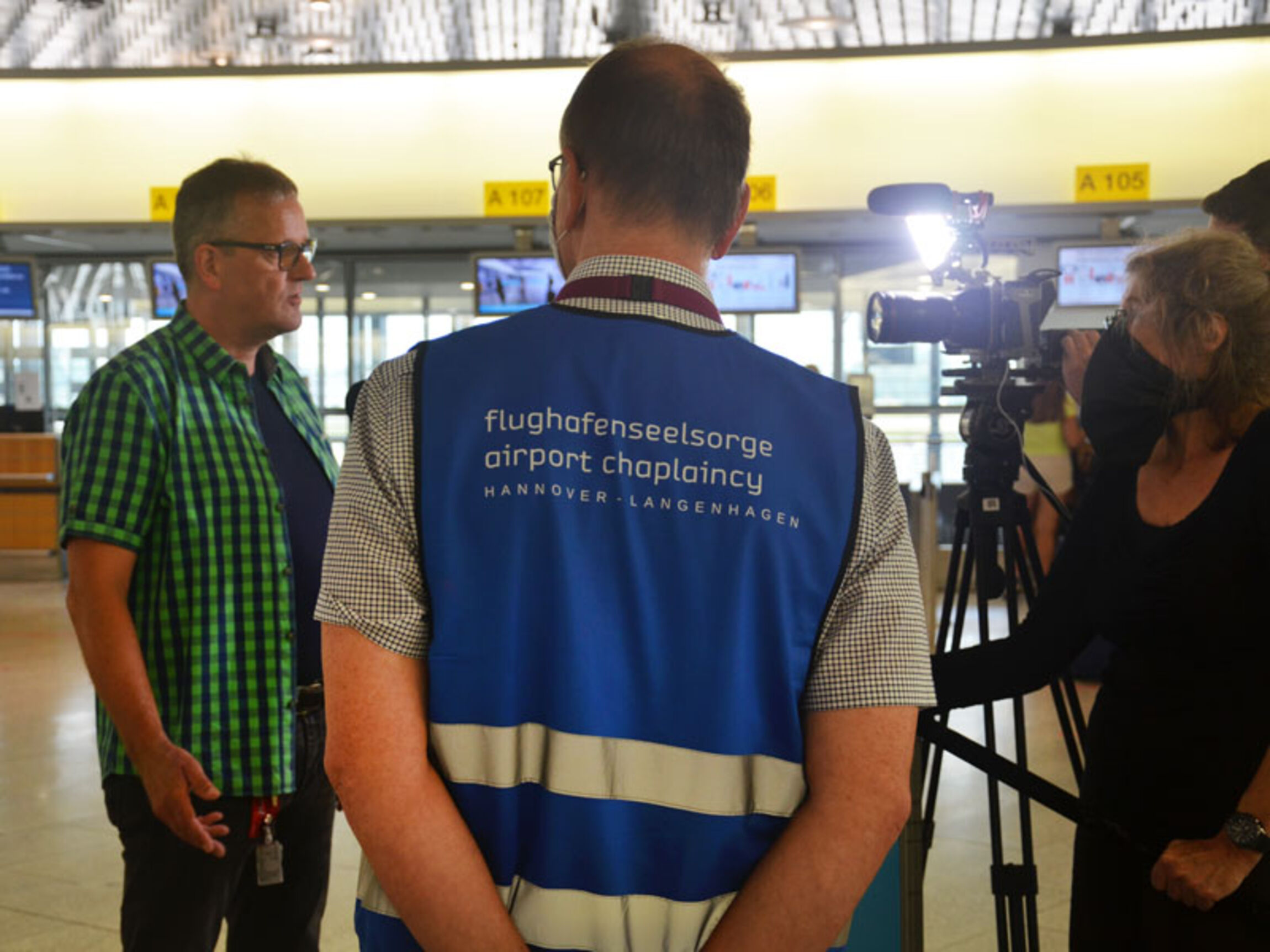 Nur 17 Flüge ab Hannover-Langenhagen bieten die Airlines an diesem Tag an; nur einer dieser Flüge bringt Reisende nach Mallorca. Wenige Tage zuvor hat die Bundesregierung eine erneute Reisewarnung für Spanien ausgesprochen, die sich schnell auch auf die Buchungszahlen auswirkt. „Wir können die Menschen ja verstehen – niemand kann sich nach dem Urlaub in Spanien noch zwei Wochen Quarantäne erlauben und niemand möchte andere Menschen gefährden“, sagt Matthias Bruns, Betriebsratsvorsitzender am Hannover Airport. Gemeinsam mit Flughafenseelsorger Pastor Karl-Martin Harms beantwortet er an diesem Tag die Fragen von Renate Baumgart und Matthias Pabst vom Evangelischen Kirchenfunk Niedersachsen-Bremen (ekn). Sie haben sich bei der Flughafenseelsorge angemeldet um zu erfahren, wie das Leben am Hannover Airport in Corona-Zeiten weitergeht.