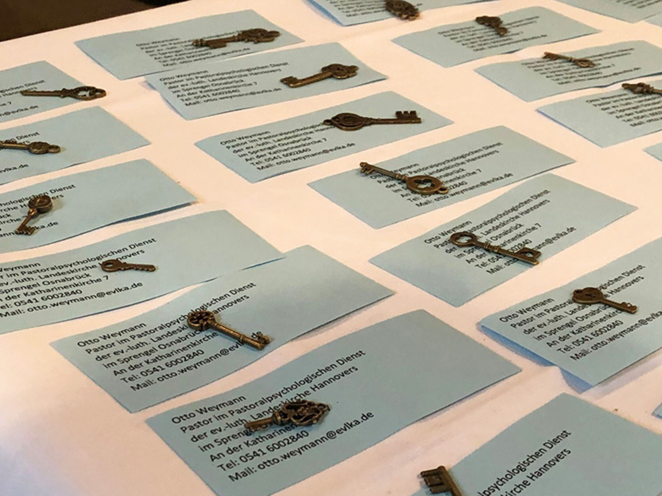 Mit Blick auf sich öffnende oder bewusst geschlossene Türen beendete Weymann den Gottesdienst in der St.-Sylvester-Kirche mit einem „Schlüsselsegen“. Am Ausgang lag dann für alle Teilnehmenden ein kleiner Schlüssel als Erinnerung bereit.