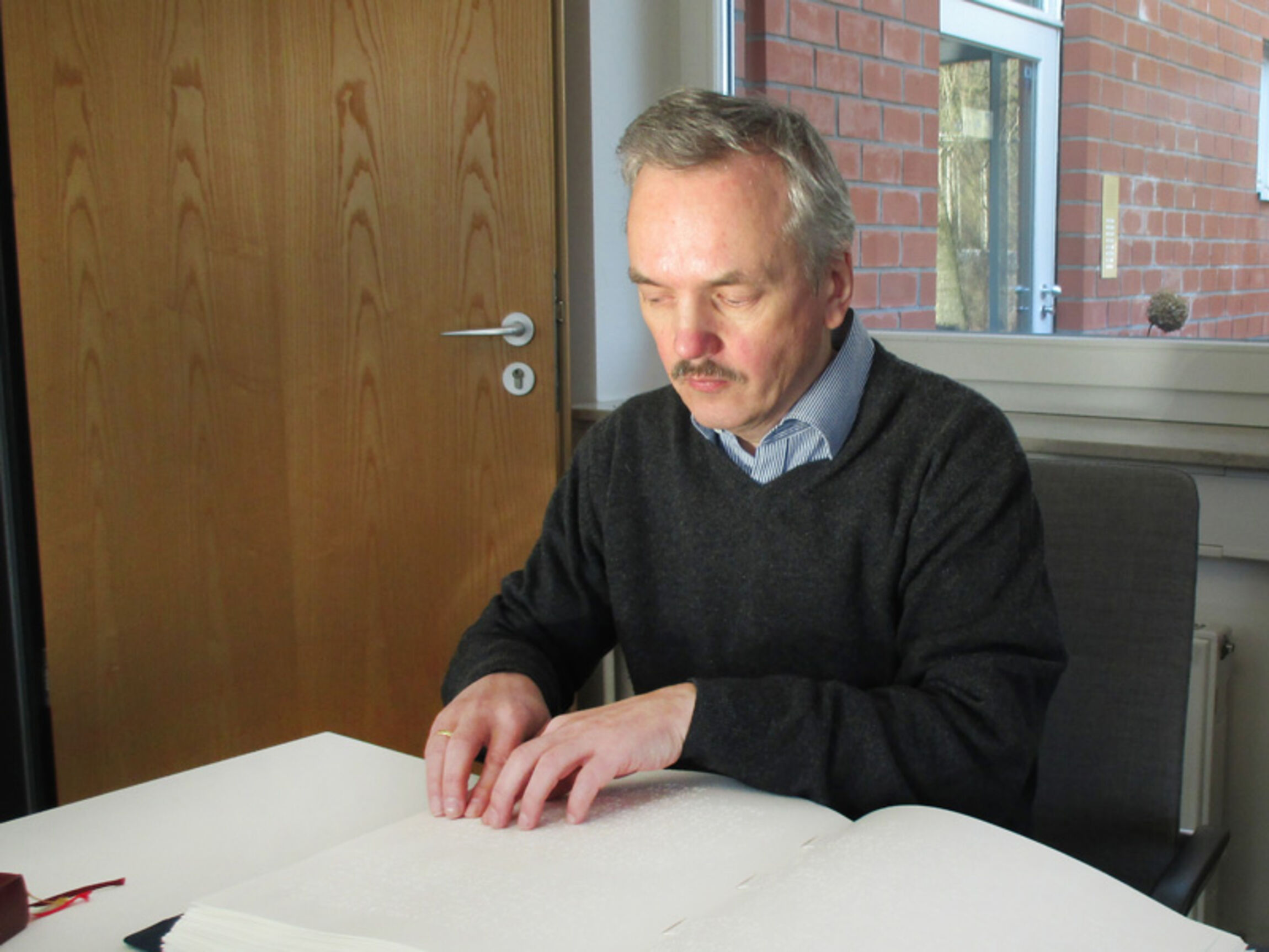 Louis Braille war auch ein begeisterter Musiker und suchte nach Wegen, auch Noten darzustellen. Mit der Blindenschrift eröffnen sich Welten, die ich als blinder Mensch selbst begehen kann, ohne auf fremde Hilfe angewiesen zu sein. Es gibt eine Mathematik- und eine Chemieschrift, die man sich nie mündlich merken könnte. Die muss man halt unter seinen Fingerkuppen haben. Heute spielen Computer eine wichtige Rolle: Die Tastatur hat eine Blindenschriftzeile. Da kommen aus der Zeile die Punkte hervor, die durch die Technik hervorgehoben werden. Zum einen gibt es Textbücher in Blindenschrift. Zum anderen nutzen blinde Kinder dieselben Textbücher wie die sehenden, aber sie bekommen diese als E-Book. Dieses E-Book wird dann auf die Blindenschriftzeile gesendet. Zusätzlich kann man auch die Sprache hörbar machen.