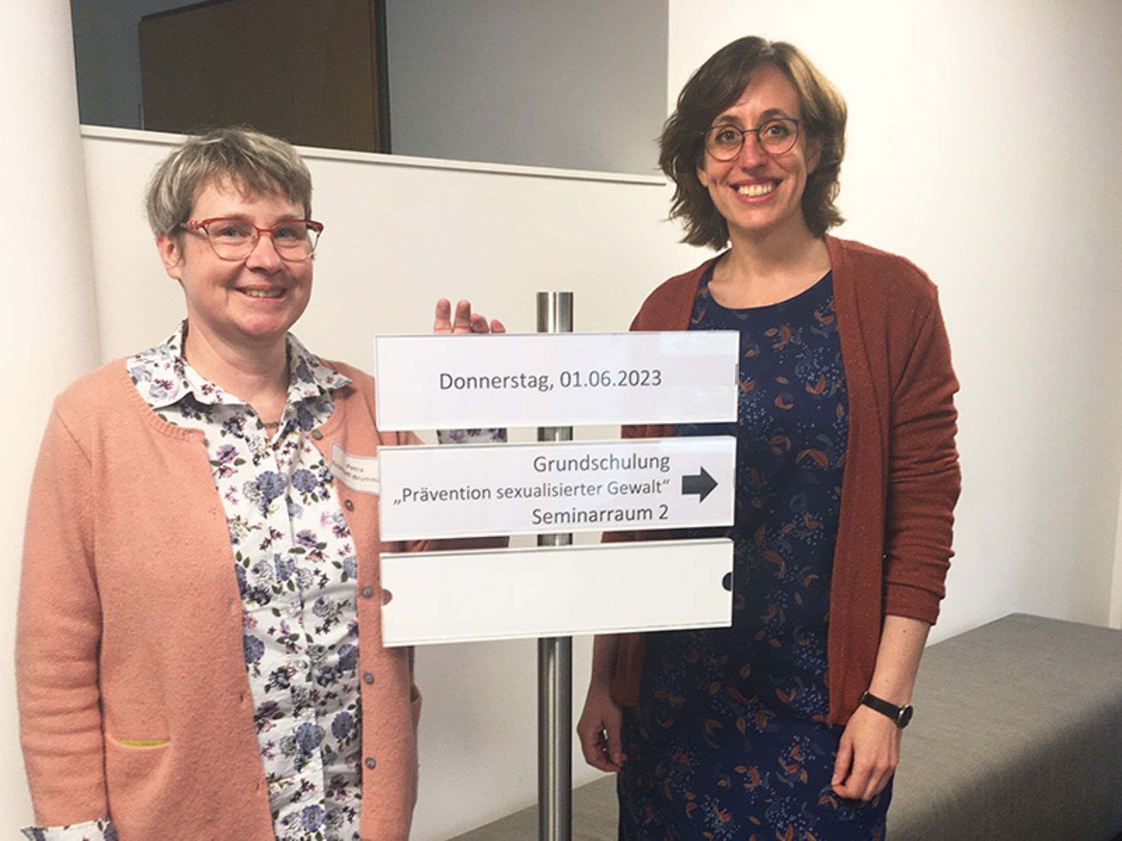 „Lange Zeit gab es starke Wahrnehmunsgblockaden gegenüber Gewalt in der Familie und in Einrichtungen“, sagt Petra Eickhoff-Brummer vom Zentrum für Seelsorge und Beratung (ZfSB) in ihren Einführungsworten zur Grundschulung „Prävention sexualisierter Gewalt“. Als Multiplikatorin der landeskirchlichen „Fachstelle sexualisierte Gewalt“ bietet sie die sechsstündige Schulung in Zusammenarbeit mit Mareike Dee, Referentin der Fachstelle für Prävention und Aufarbeitung, im ZfSB an. An diesem Vormittag sind dazu Krankenhausseelsorger*innen und die landeskirchlichen Supervisor*innen und Coach*innen eingeladen.