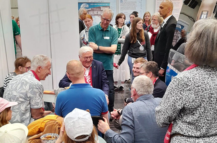 „Danke für die inspirierenden Gespräche“: Unter dieser Überschrift postete Bundespräsident Frank-Walter Steinmeier auf seinem Instagram-Account Fotos von seinem Kirchentagsbesuch am Stand der ...