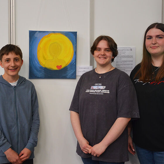 Im „Zentrum Psychologische Beratung und Seelsorge“ in einer anderen Messehalle tat Christine Koch-Brinkmann mit etwa 60 Berater*innen aus ganz Deutschland Dienst. In vertraulicher Umgebung boten sie Beratungsgespräche für Gruppen und Einzelpersonen an – ein Teil dieses Angebotes war schon vor Beginn des Kirchentages ausgebucht. Koch-Brinkmann, Fachleitung der Fachstelle für Psychologische Beratung des ZfSB, eröffnete zudem eine Ausstellung von Bildern, die Schüler*innen der Jahrgänge 9 und 12 der evangelischen IGS Wunstorf unter dem Titel „Brücken aus Licht“ für den Kirchentag gemalt hatten. Schulseelsorgerin Sarah Glawon erläuterte dazu, dass den Schüler*innen keinerlei Vorgaben gemacht worden waren, was Thema oder Material ihrer Bilder betraf. „Die Ausstellung war hier am richtigen Ort – ich habe immer wieder gesehen, dass Besucher*innen sich die Bilder sehr konzentriert angesehen haben“, so Koch-Brinkmann.