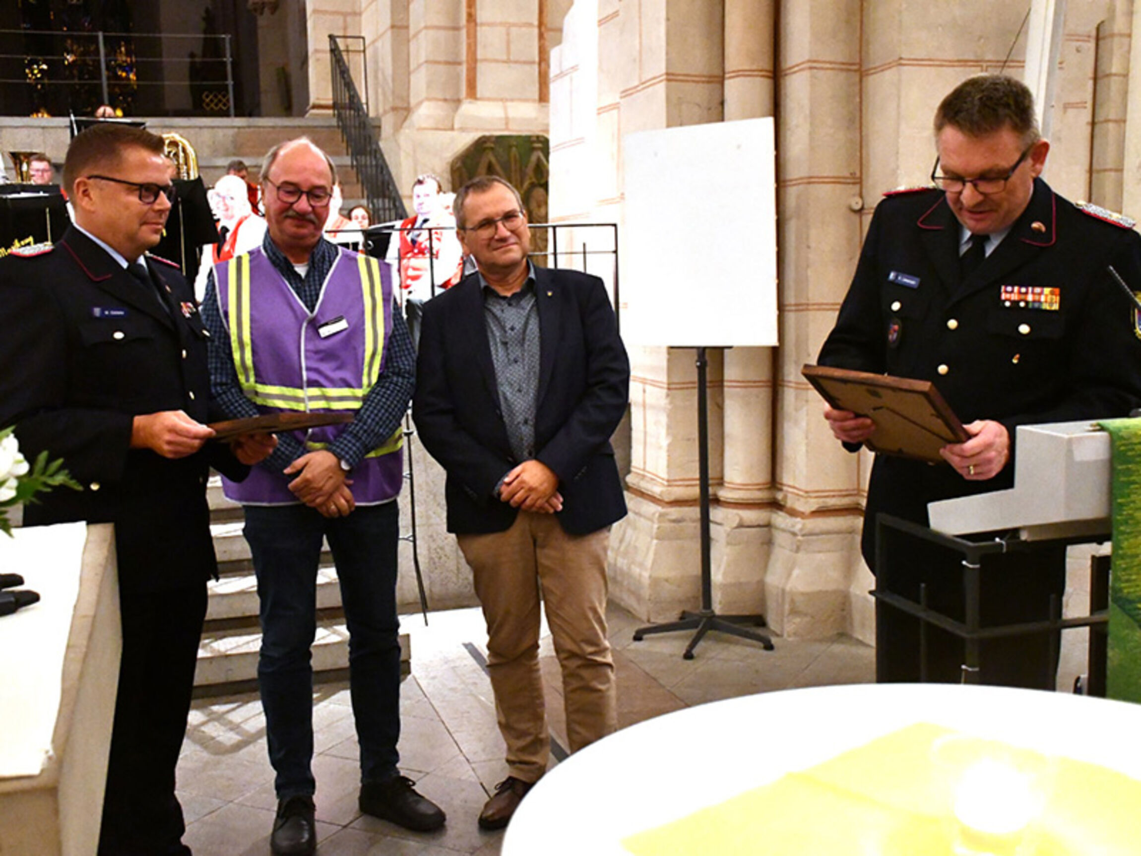 Während der Feier im Münster, die unter der Überschrift „Miteinander unterwegs – gemeinsam im Austausch“ stand, wurden Joachim Wittchen und Michael Ließ für ihre langjährige Erfahrung, ihr menschliches Einfühlungsvermögen und ihr unermüdliches Engagement in der Notfallseelsorge über viele Jahre mit der Verdienstspange des Kreisfeuerwehrverbandes Hameln-Pyrmont geehrt.